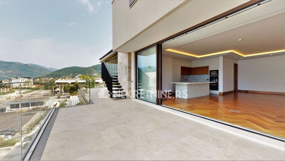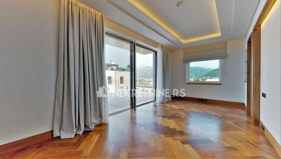 "Smešten je u novoj, kvalitetnoj zgradi, mediteranskog dizajna koja se sastoji od 2 sprata, a stan se nalazi na prvom. Na 300 metara od Porto Montengra i od lokalnih plaža", navodi se u oglasu.