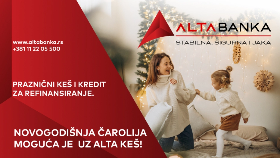 ALTA banka je omogućila da vama i vašim najbližima period predstojećih praznika postane prava čarolija uz praznični keš kredit i kredit za refinansiranje.