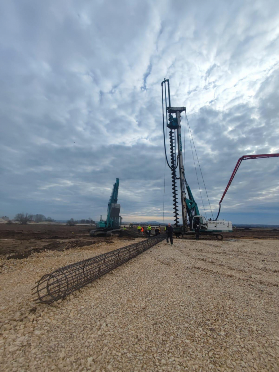 U prvoj fazi radovima je obuhvaćena izgradnja temelja hala, odnosno izvođenje šipova, naglavica i temeljnih greda. Na projektu su predviđeni šipovi prečnika 800mm, ukupno 1.647 komada. Šipovi su dužine 10 do 18m, a projektom je planirano da se za potrebe izgradnje hala izvede oko 27.500 m’ šipova.