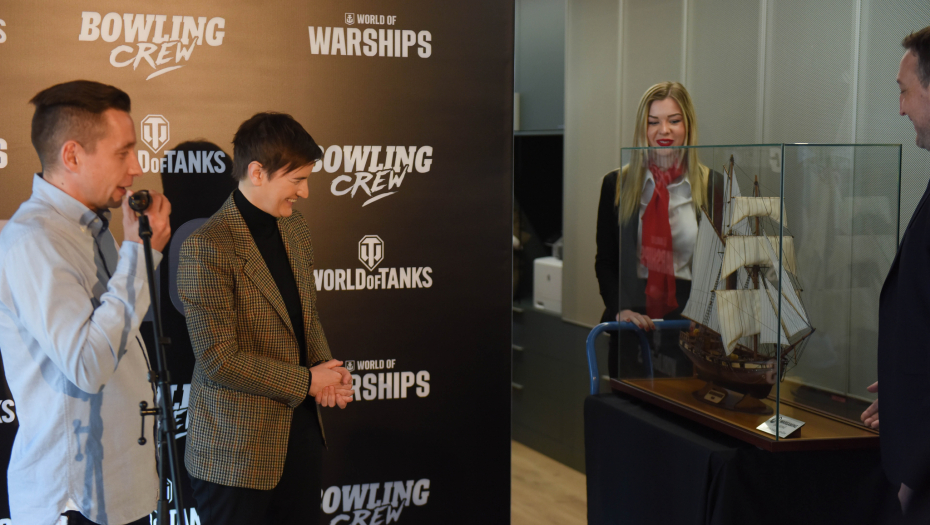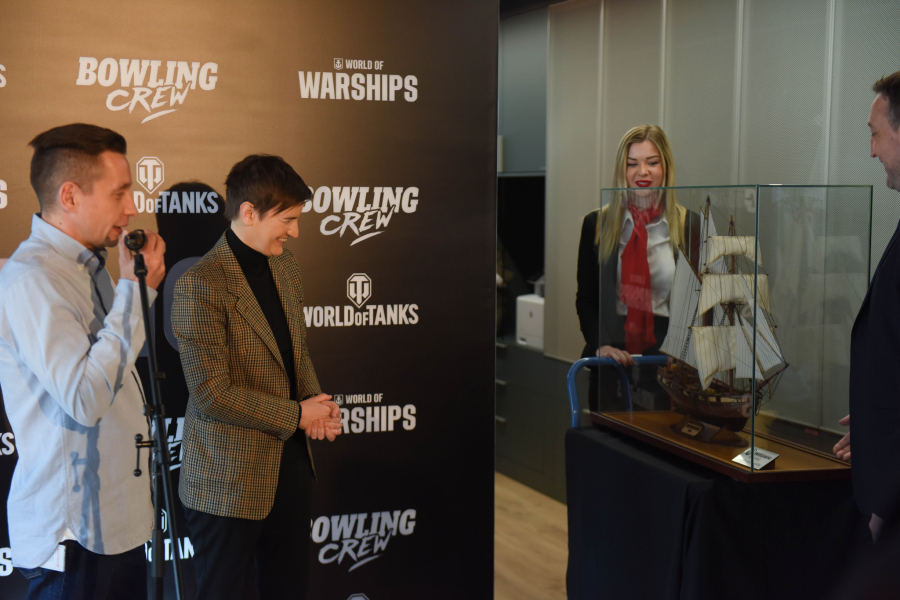 Premijerki Brnabić predstavnici kompanije uručili su repliku jedrenjaka Enterprajz iz 1799. koji je jedan od ratnih brodova prisutan u video igri Vorld of Voršips.