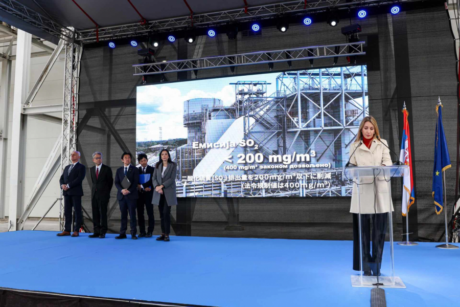 Dodala je da je postrojenje za odsumporavanje dimnih gasova u TENT A jedan od najvećih ekoloških projekata u nekoj termoelektrani u Evropi, a treći u svetu, poručivši lažnim ekolozima u Narodnoj skupštini da je država posvećena zaštiti životne sredine, a da su sistemi za odsumporavanje dimnih gasova već izgrađeni u termoelektrani Kostolac. Istakla je da projekat odsumporavanja na TENT A predstavlja važan deo bilateralne saradnje sa Japanom, za koju postoji uverenje da u budućnosti može da bude proširena novim inicijativama.