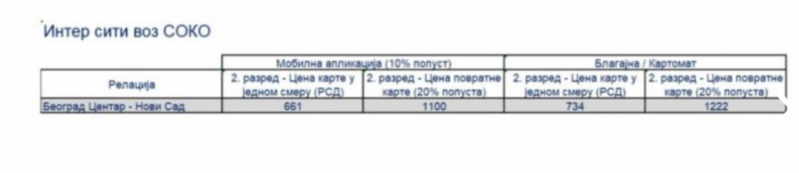 Soko će od 1. septembra, na relaciji Beograd-Novi Sad u jednom smeru biti 661 dinar, dok je trenutno 430 dinara.