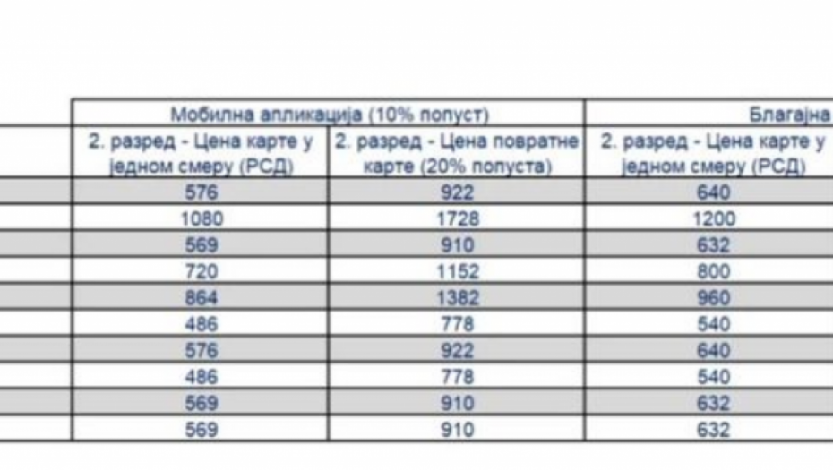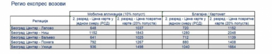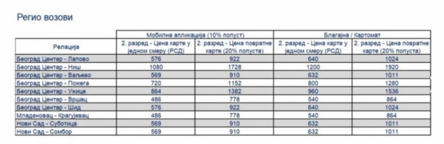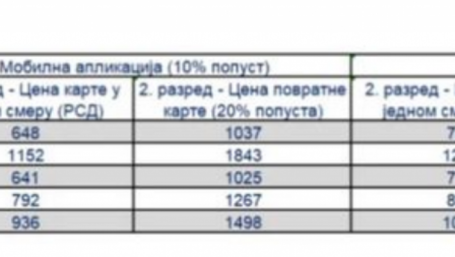 Recimo, relacija Beograd-Lapovo trenutno u jednom smeru košta 486 dinara, a od septembra će biti 576 dinara bez popusta. U pitanju je rast od 90 dinara.