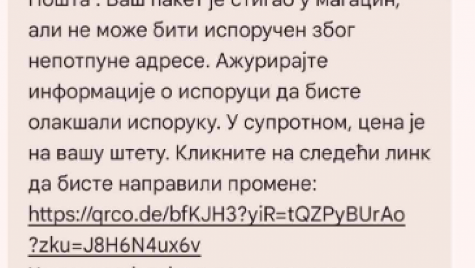 Na mobilne telefone građana Srbije stižu zlonamerne poruke od toga da treba da se plate navodni "carinski troškovi za pošiljku", do zahteva "da ažuriraju adresu" iako nisu poslali niti očekuju bilo kakav paket.