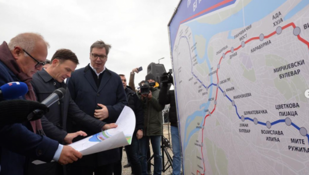Predsednik Srbije Aleksandar Vučić obišao je radove na projektu izgradnje infrastrukture i nasipanja platoa za depo beogradskog metroa na Makiškom polju.