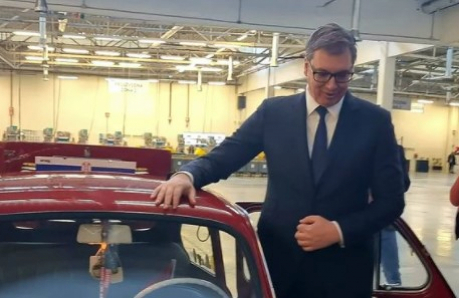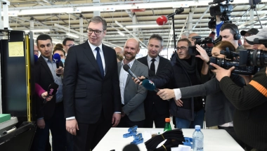 Vučić je obišao pogone nove fabrke koja proizvodi obuću namenjenu vojsci, policiji i vatrogascima i rekao da je od 88 radnika koji su prvi dobili posao, čak njih 85 radilo u Geoksu, kao i da Haiks planira da zaposleni još oko 650 tih radnika.