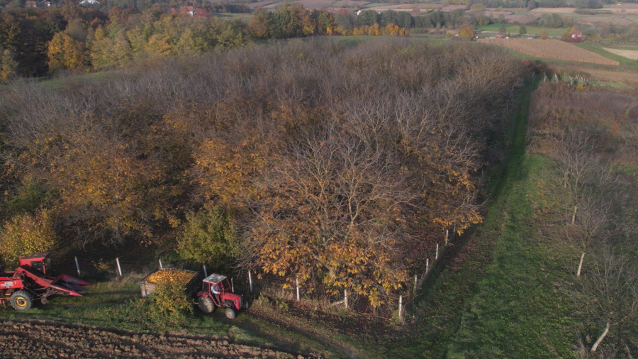 "Pre nego što sam podigao zasade konsultovao sam se sa svojim kolegama. Svako stablo je posađeno na rastojanju od deset metara, iskopao sam bunar, nabavio cisternu i obezbedio navodnjavanje kap po kap. Lastari su se brzo širili. Кad je u pitanju orah osim tog zalivanja, potrebno je oko stabala i pokositi, ali travu nisam sklanjao nego sma je ostavljao što se pokazalo odličnim za zemljište. Кad dođe rod, on se otrese specijalnom mašinom koja je prikačena na traktor i kasnije se kupi", rekao je voćar iz sela Tvrdići kod Požege.