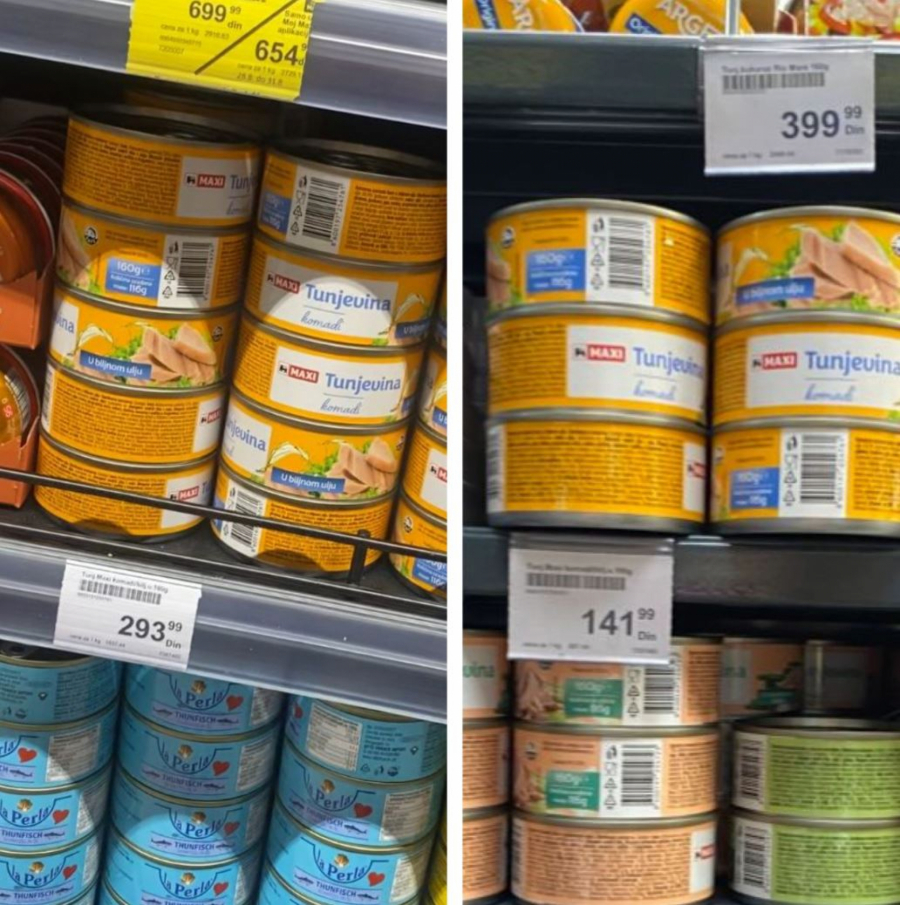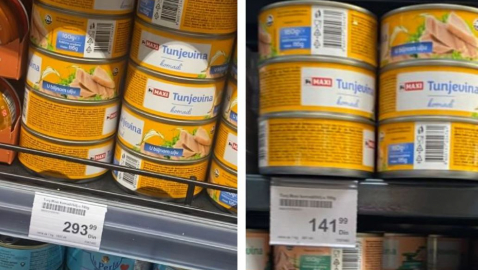 Tunjevina u konzervi jeftinija je znatno, oko 150 dinara po komadu.