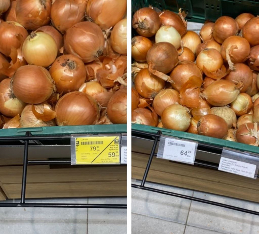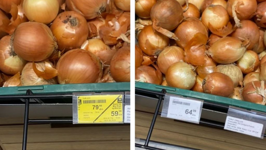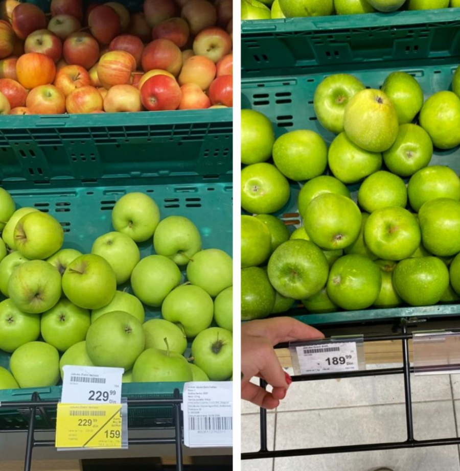 Cena jabuka niža je za oko 40 dinara, a luka za oko 15 po kilogramu.