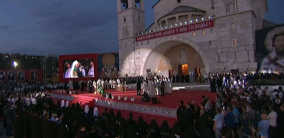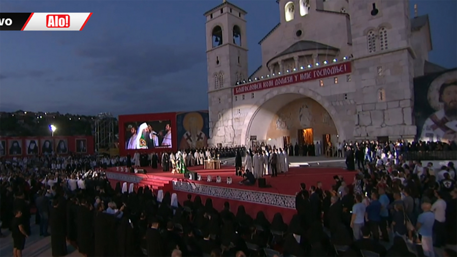 - Najradije bih se spustio u kriptu u kojoj se nalazi telo našem Amfilohija da tamo svi u molitvi, ćutke, poslušamo da nam poruči. On zasigurno zna da je mir Hristov jedini okvir koji je zdrav i ispravan za život svih nas zajedno. Ovo sveto mesto ispred kojeg stojimo, koje je posvećeno vaskrsenju Hristovom, najbolje pokazuje smisao vere i postojanja Crkve. Crkva ne postoji da bi rešava političke, državne, ekonomske i svake druge probleme. Ona postoji da bi smo mi došli u nju i da bi tu naslutili tajnu za kojom čeznemo, a to je život večni. Kada dotaknemo tajnu vaskrsenja tada sve prethodno dobija svoj misao. Utešen vašom verom i ljubavlju, znam da smo sabrani u ime oca, sina i svetoga duha, za nas je danas praznik i ja vam ga od sveg srca čestitam.