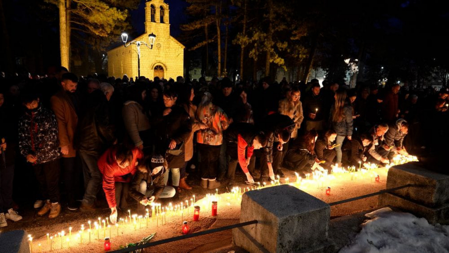 Veliki broj građana Cetinja u tišini je zapalio sveće kod spomenika Lovćenska vila u znak podrške porodicama stradalih u jučerašnjem masakru.