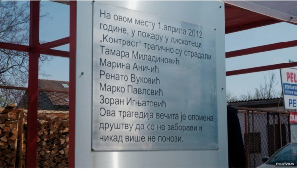 Kobne noći 2012. godine, oko tri sata posle ponoći, izbio je požar u diskoteci "Kontrast", koji je zauvek ugasio živote šestoro mladih ljudi.