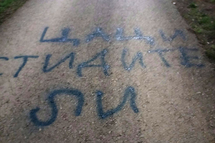 A šta su patriote, kako se predstavljaju, ostavile za sobom videlo se tek sutradan. Ostali su nepismeni grafiti na asfaltu i prilazu kući. "Opozicionari" su umesto "ćaci" napisali su "caci", poruke-rečenice su van ikakvog pravopisa sekli znakovima interpunkcije - "Caci stidite li se!!! svoga srama". Tako se u ćiriličnoj poruci "potkralo" i latinično "r" u reči "božuri".