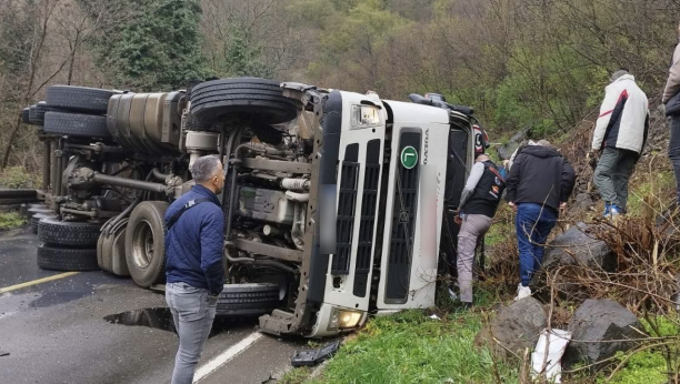 PREVRNUO SE KAMION KOD MAGLIĆA Teška saobraćajna nezgoda putu Čačak–Raška, vatrogasci izvukli vozača