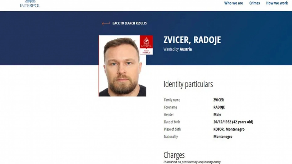 “Radoje Zvicer je osumnjičen za uvoz 83 kilograma kokaina (čistoće 60,9%) iz drugih zemalja u Austriju i to kao vodeći član kriminalne organizacije. Sumnja se da je, zajedno sa saučesnicima, učestovao u organizovanju krijumčarskog lanca. Ova osoba je organizovala isporuku narkotika koja je prodavana u Beču u njegovo ime”, navodi se na sajtu austrijske policije.
