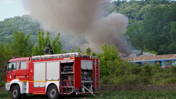 PRVE FOTOGRAFIJE SA MESTA POŽARA NA ŽELEZNIČKOJ STANICI Gore putnički vagoni, kulja gusti dim (FOTO)