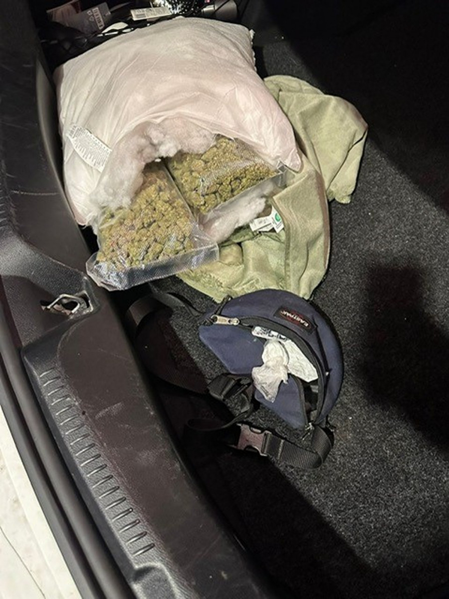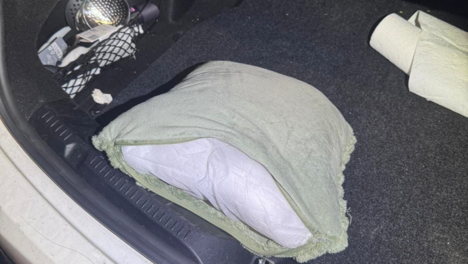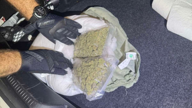 Detaljnom kontrolom uz pomoć službenog psa, najpre je kod vozača pronađena manja količina kokaina, da bi potom u jastuku, koji se nalazio na zadnjem sedištu vozila, bilo otkriveno 506,8 grama marihuane.