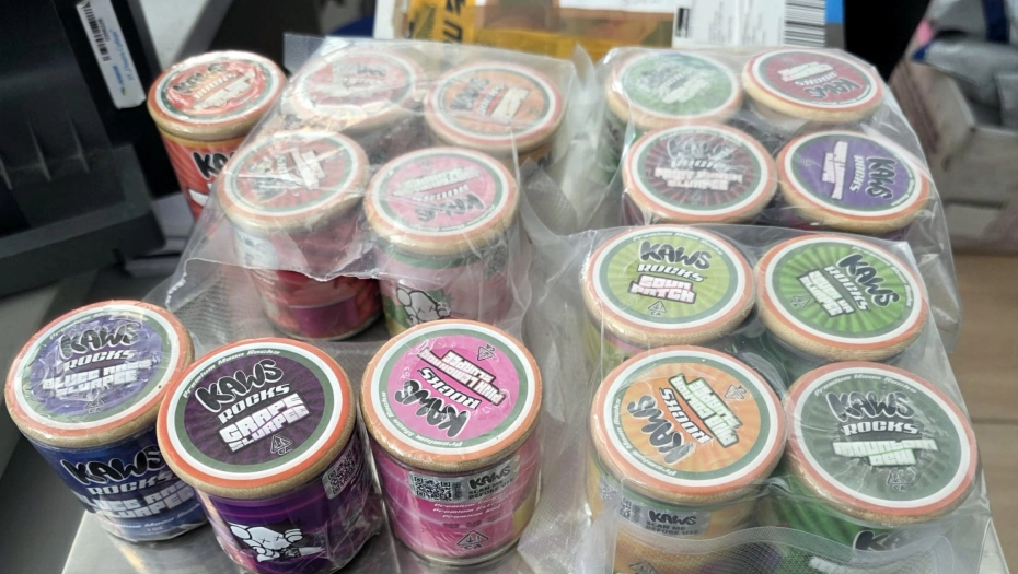 Kako je saopšteno, u pošiljci pronađenoj početkom avgusta, nalazilo se 16 staklenih teglica sa natpisom ''Kaws Rock Grade Slurpee'' ispunjenih sasušenom biljnom materijom, koja je priručnom analizom odreagovala na marihuanu.