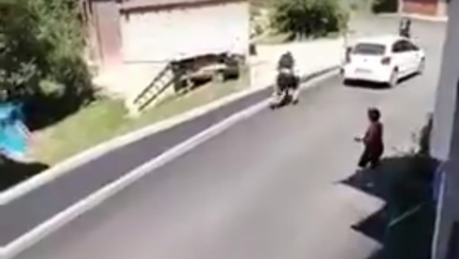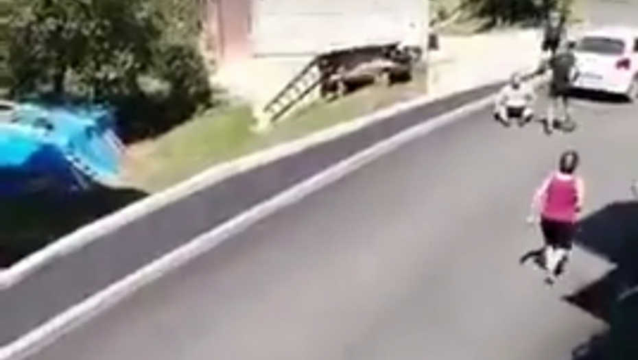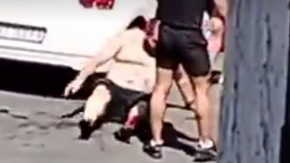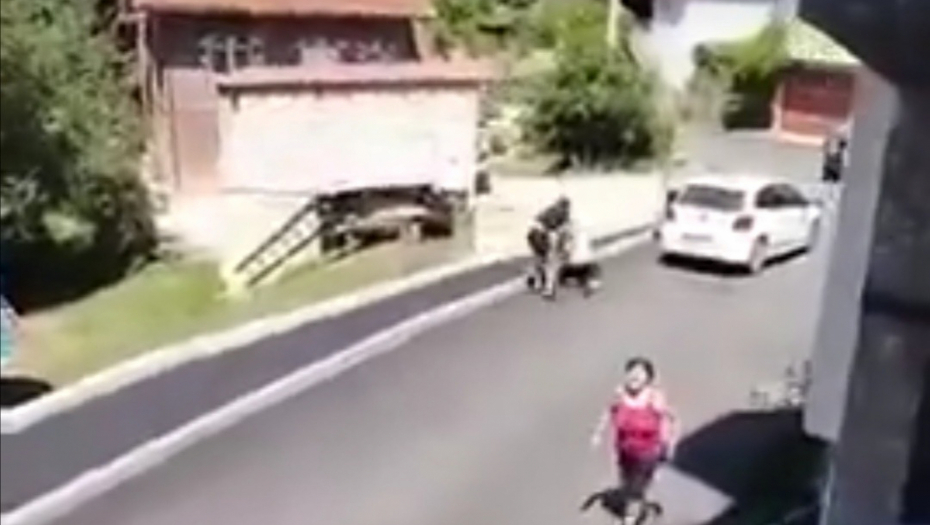 Na snimku se jasno vidi kako je jedan od napadača oborio muškarca, a potom su prišao beli automobil iz koga su izašla još dvojica napadača.