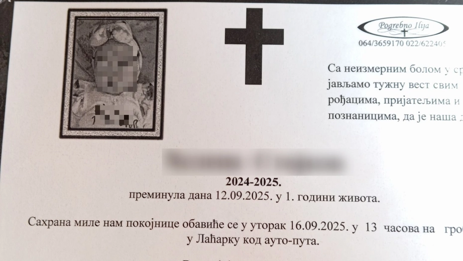NAJTUŽNIJA UMRLICA Ovo je beba koja je stradala u Laćarku (FOTO)