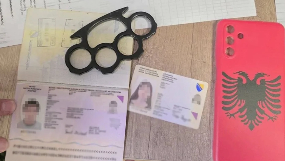 Pregledom lica, kod M. S. pronađen јe metalni bokser i PVC maska za telefon sa simbolima zastave Albaniјe.