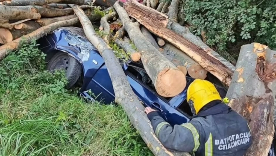 - Vozač je izgubio kontrolu i prevrnuo se, debla su spala sa prikolice i bukvalno smrskali dva putnička vozila koja su završila u kanalu pored puta, kaže za RINU jedan od očevidaca.