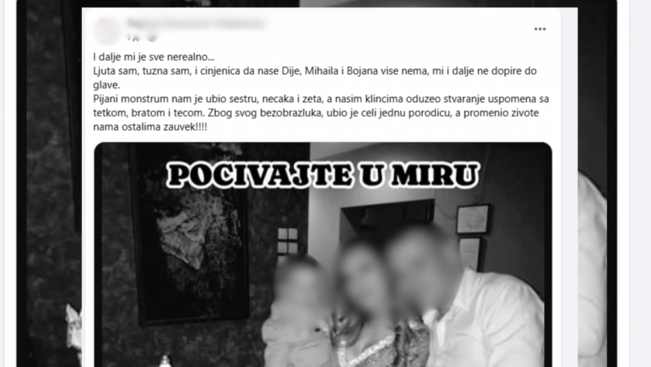 Pijani monstrum nam je ubio sestru, nećаkа i zeta, a našim klincima oduzeo mogućnost stvarаnjа uspomena sа tetkom, bratom i tečom. Zbog svog bezobrazluka, ubio je celu porodicu, a promenio živote nаmа ostalima zauvek!