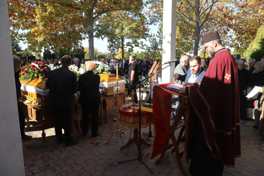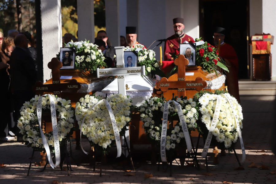 Ispred same kapele postavljena su tri sanduka, sa cvećem i fotografijama nastradalih. Između dva sanduka nalazi se i jedan manji bele boje u kojem će počivati mali Mihailo. Ovaj prizor rasplakao je sve prisutne i niko nije uspeo da se suzdrži kada su ugledali srceparajući prizor.