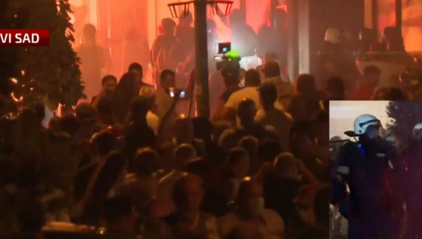 Za to vreme nepoznati učesnici javnog skupa su prilazili, negodovali, bacali flaše, polivali vodom policijіske službenike, koji su preduzimali službenu radnu lišenja slobode okrivljenog.