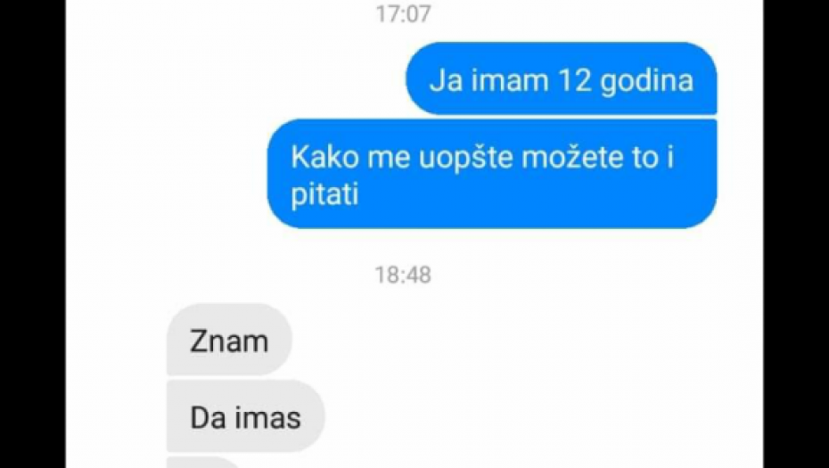- Da li želiš samo seks?-upitao je predator devojčicu. -Ja imam 12 godina. Kako uopšte možete to da me pitate? -odgovorila je maloletnica.