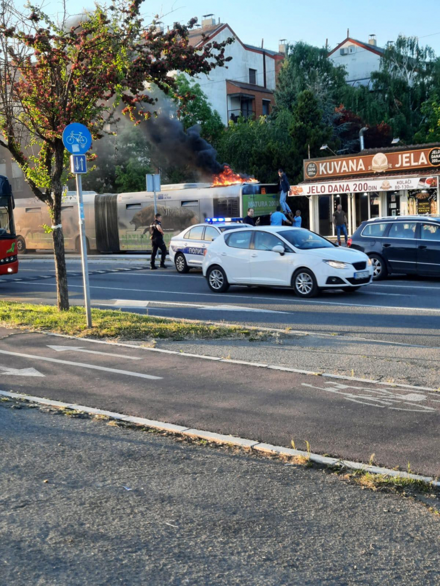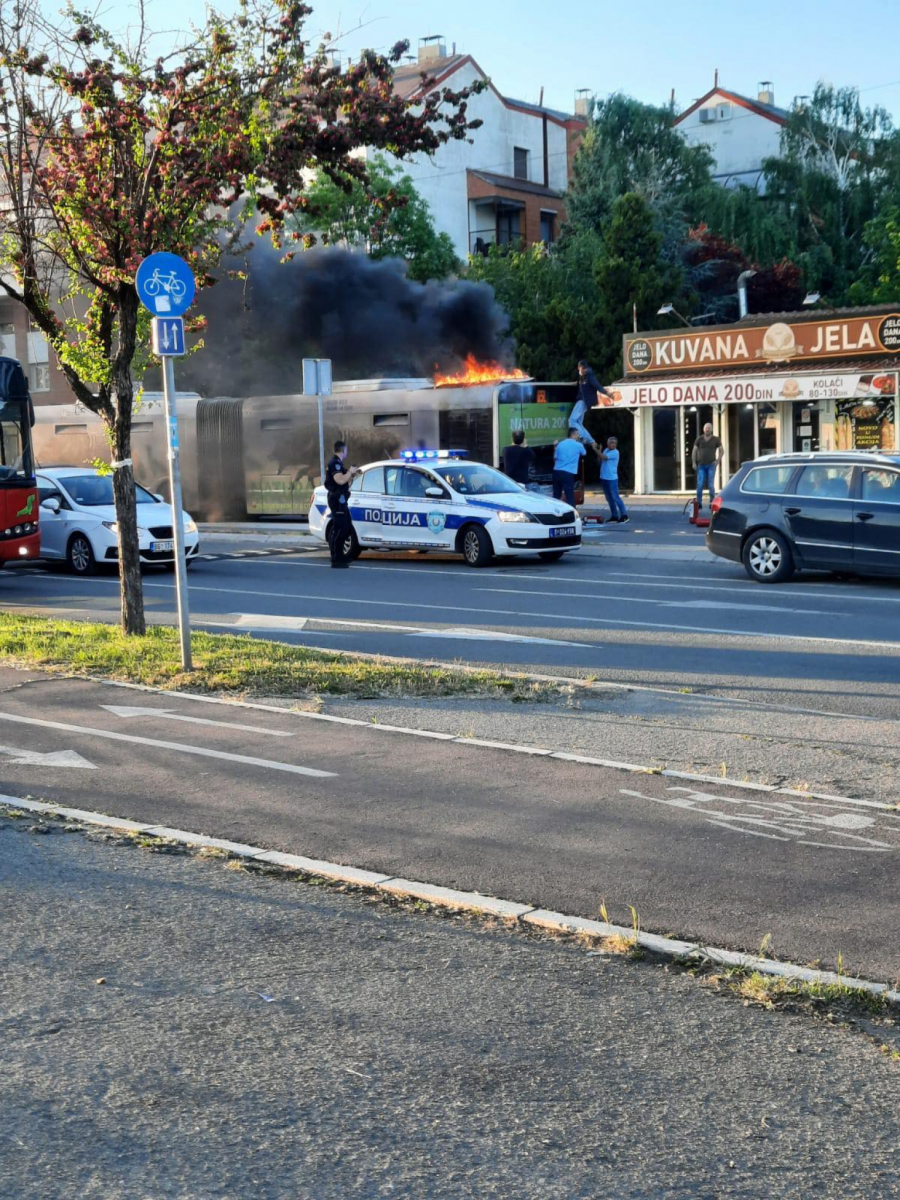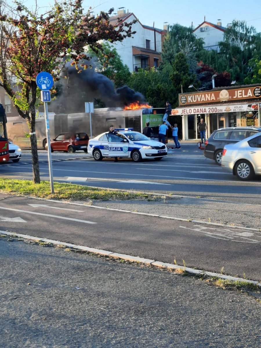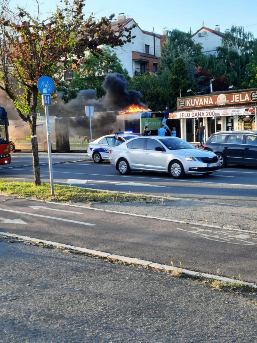 Ono što se vidi jeste da se zapalio zadnji deo autobusa.