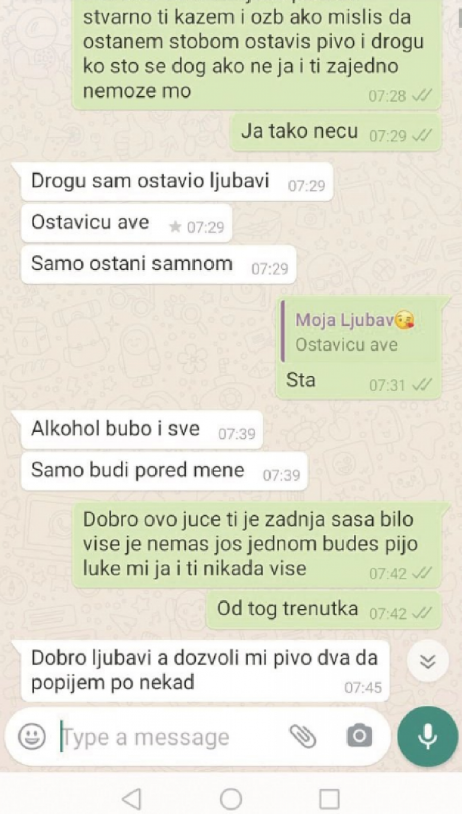 – Zajedno smo šest meseci, a nikada se nismo svađali. Svaku poruku čuvam u telefonu kako bih svima dokazala da nisam kriva i da nisam ja njega ostavila, kako pričaju. Kažu i da se zbog mene ubio, a to nije tačno! Jedino oko čega smo se prepirali jeste to što je pio alkohol i to sam uspela da mu uskratim. Ali kad nisam pored njega, opet je počinjao da pije – tvrdi Ljiljana.