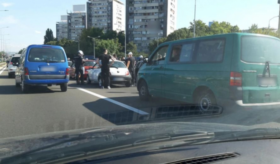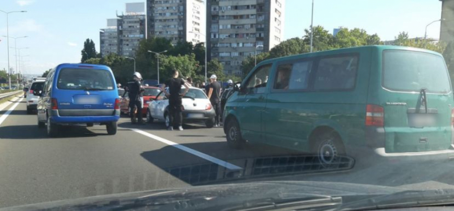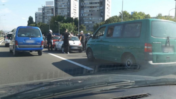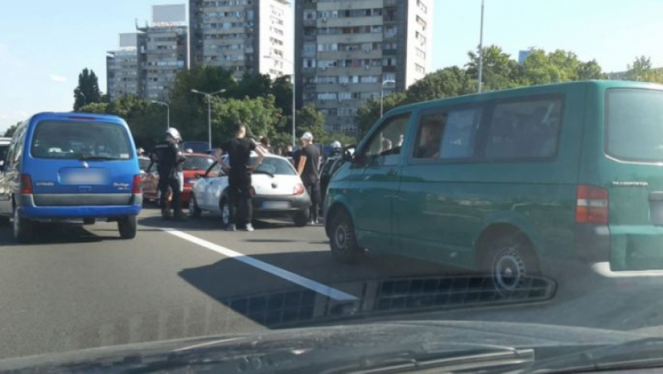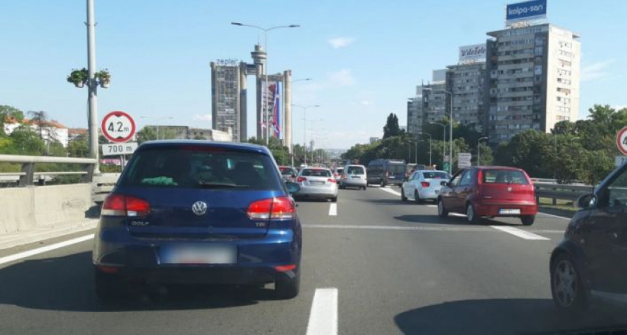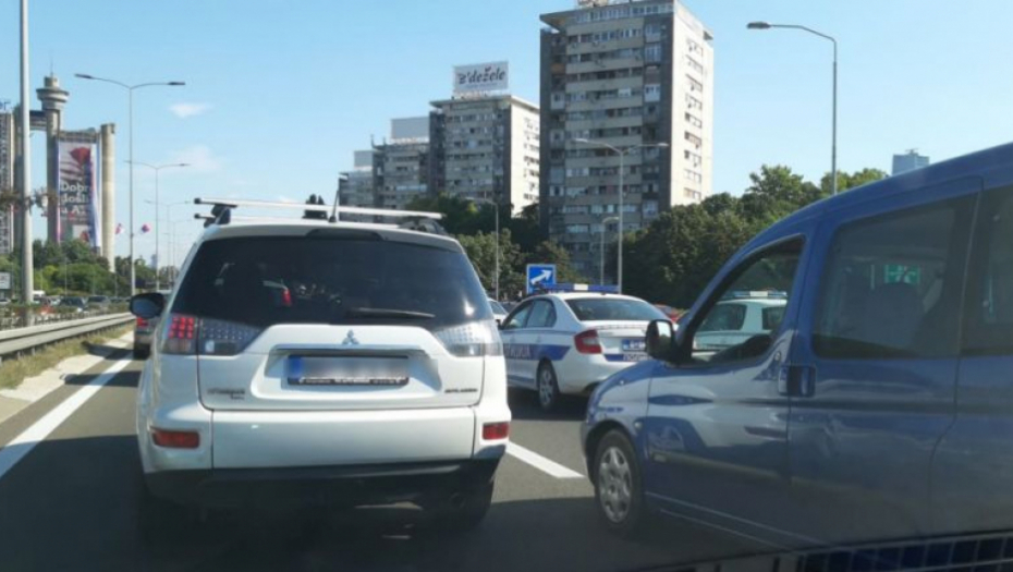 U desnoj saobraćajnoj traci je zaustavljen saobraćaj, koji se otežano odvija na tom delu puta.