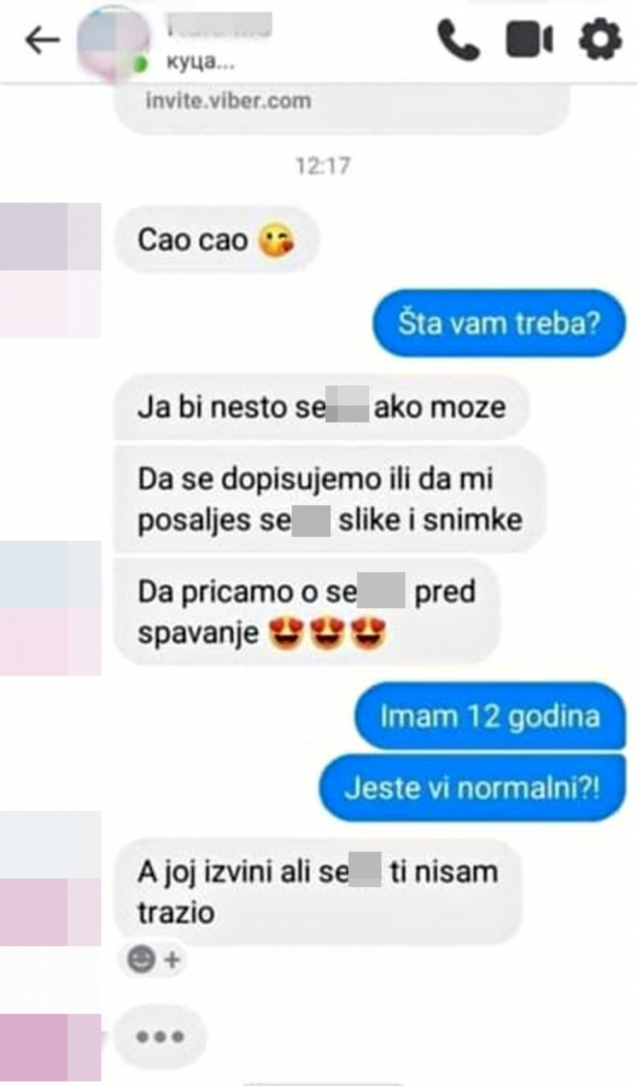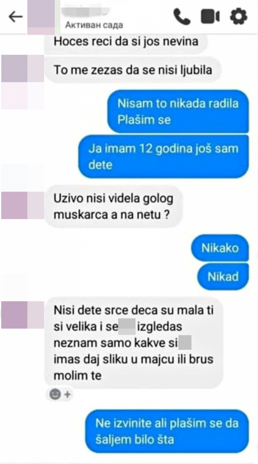 Odrasli muškarac, naime, traži obnažene fotografije u prepisci, navodno, sa devojčicom. Takođe, nudi joj da vidi golog muškarca, ubeđujući je da ona i nije tako mala.