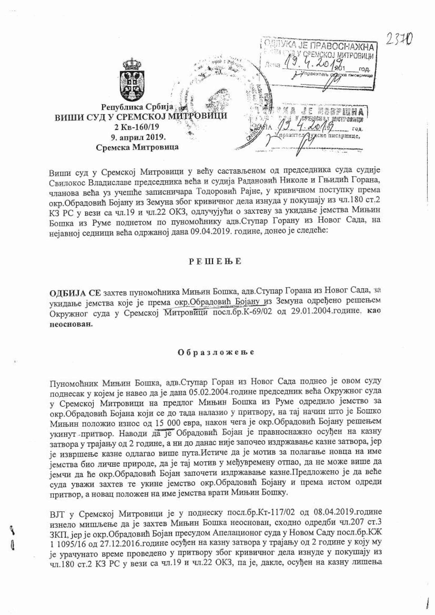 Sudu smo uputili pitanje koliko su Obradovićevih molbi odobrili za proteklih godinu dana, ali još nismo dobili odgovor.
