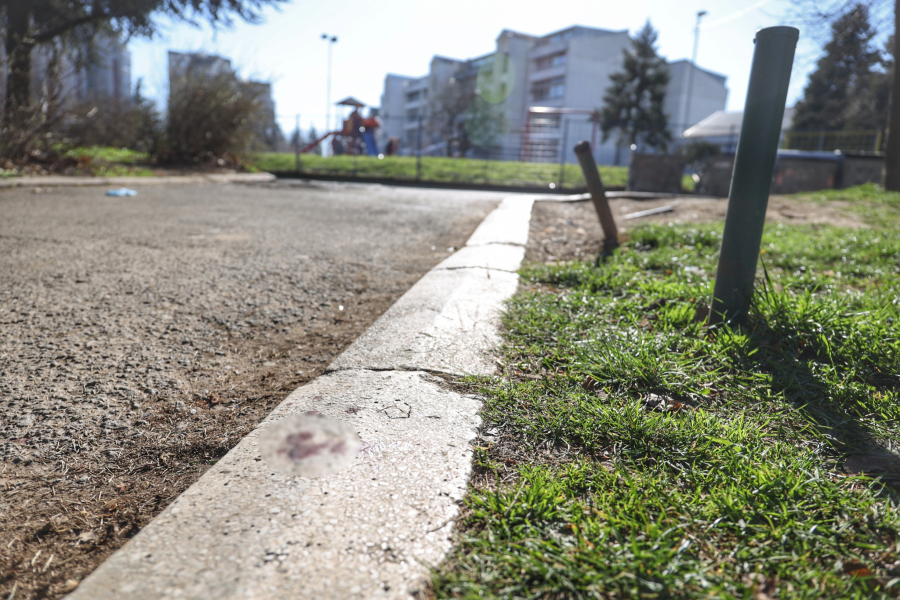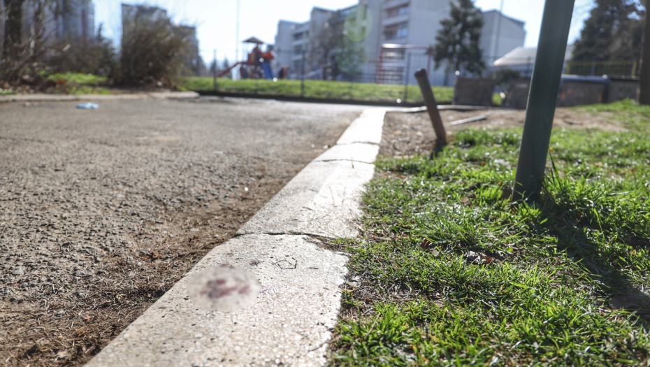 Na mestu gde je sinoć izboden još se nalaze tragovi krvi. Sve se dogodilo ispred gimnazije "Patrijarh Pavle".