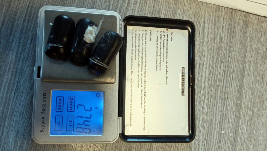 Policija je prilikom kontrole autobusa bugarskih registarskih oznaka, koji saobraćaja na relaciji Sofija – Strazbur, kod osumnjičenog ispod njegovog sedišta u najlonskoj kesi pronašla 1.224 grama bele praškaste materije nalik na opojnu drogu kokain u kapsulama, a u ličnom prtljagu još tri kapsule u kojima se nalazilo 27,48 grama ove opojne droge.