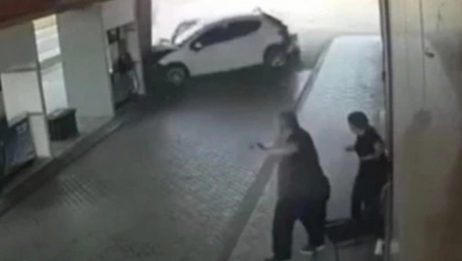 Kako se može videti na objavljenom videu, vozač crnog vozila je prilikom skretanja na benzinsku pumpu prvo udario jedan automobil, da bi potom direktno udario parkirani "pežo".