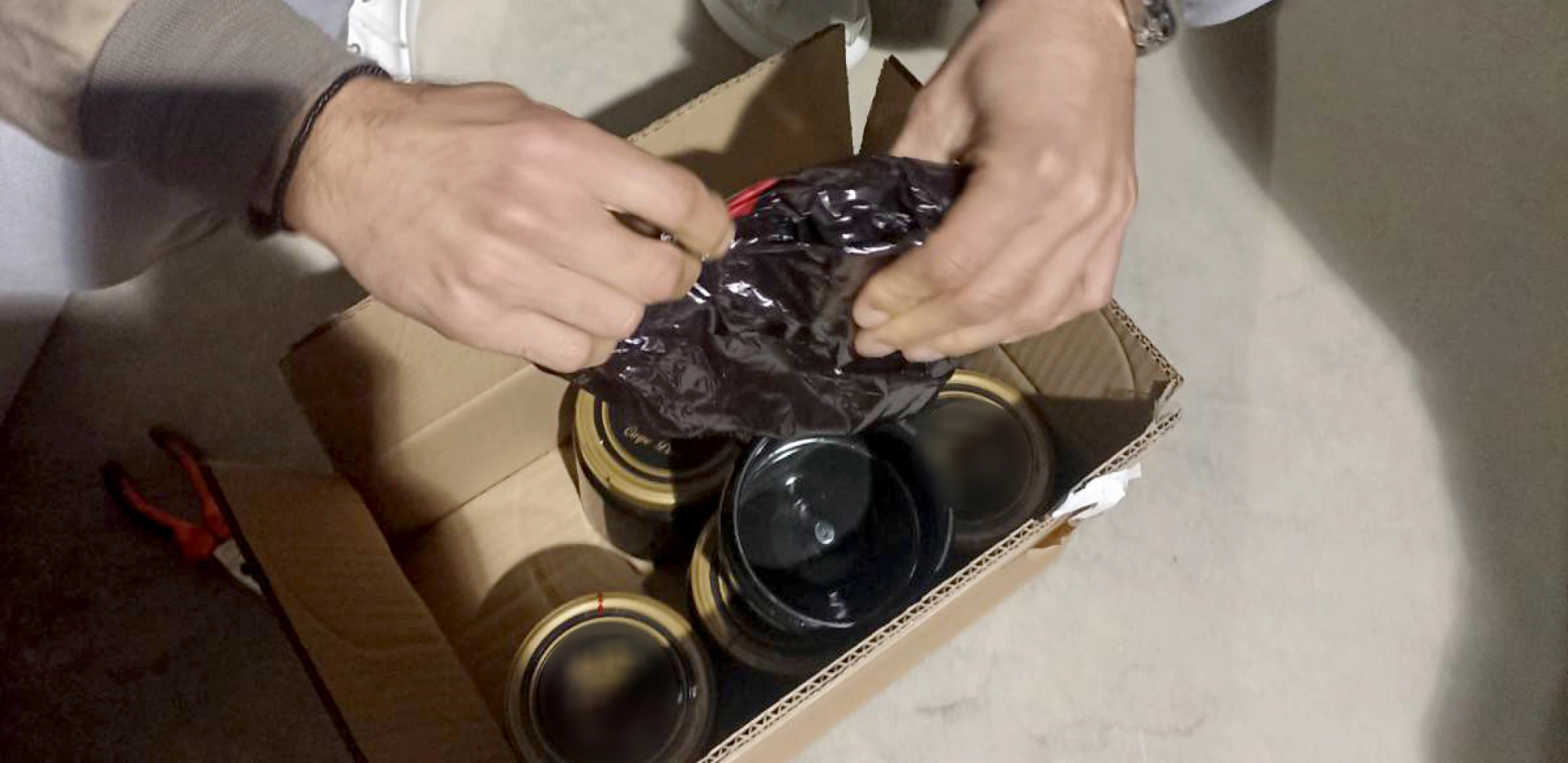 Pregledom tovarnog dela oba kamiona granična policija je između blokova pronašla sakriven duvan za nargile u fabričkom pakovanju, u teglama od po jednog kilograma.