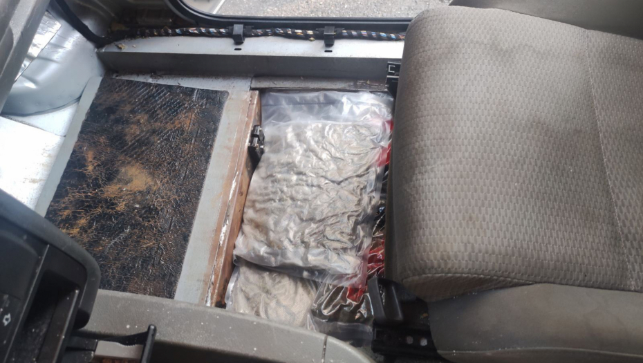 Policija je na području Кragujevca, pregledom automobila marke „audi'', kojim je upravljao osumnjičeni, u specijalno napravljenom bunkeru u podu vozila, pronašla 52 paketa sa marihuanom.