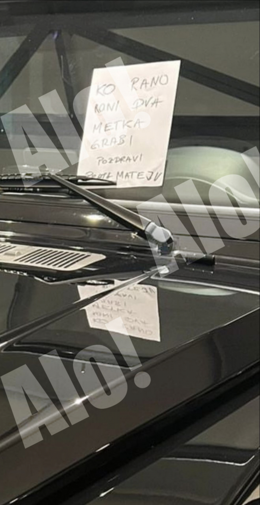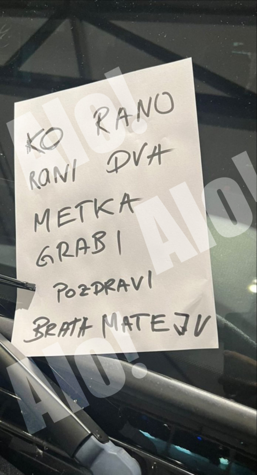 - U četvrtak oko 18 časova u Herceg Novom, ispod brisača terenca „mercedes“ koji je u vlasništu tinejdžerove majke, ostavljeni su papiri s pretećim porukama. Pisalo je: „Nikolina, čuvaj djete. Tu smo“. Takođe, u Budvi su gotovo u isto vreme preteće poruke ostavljene i ispod brisača „mercedesa“ koji je u vlasništvu sestre maloletnika. Tu je stajao papirić na kojem je pisalo: „Ko rano rani, dva metka grabi. Pozdravi Mateju“. Pored te poruke prikačena je i još jedna u kojoj se pominje „40 dana“ - rekao je naš izvor.