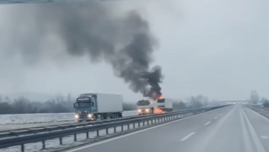 Ono što se vidi na snimku je crni gusti dim i vatra koja je zahvatila kamion.
