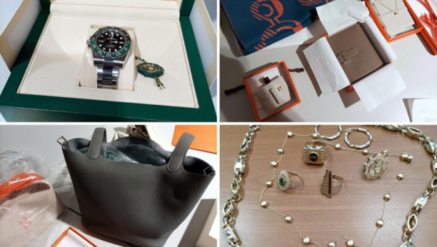 Pored toga, u koferu se našao i nakit robih marki ''Fred'' i ''Hermes'', kao i jedna ženska tašna, novčanik i šal ''Hermes'', uz koje su takođe pronađeni originalni računi, na osnovu kojih je utvrđeno da vrede gotovo 10.000 evra.