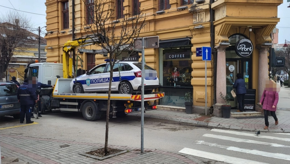 OVAJ PAUK KUPI SVE! Neverovatan prizor u centru Čačka: "Podignuto" vozilo policijske patrole (FOTO)