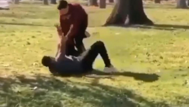 ZASTRAŠUJUĆI SNIMAK TUČE U BEOGRADU Petorica šutiraju mladića na zemlji, devojka ih preklinje da prestanu (VIDEO)
