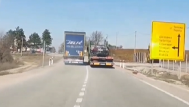 OVAKO SE GINE NA SRPSKIM DRUMOVIMA! Šleper-kamikaza pretiče preko pune linije - ide na auto u kom su dvoje dece! (VIDEO)