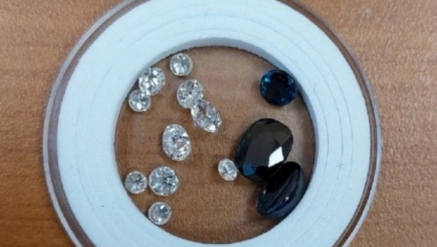 Mada je rekao da nema ništa da prijavi, carinici su u njegovoj torbi pronašli razne neprijavljene dragocenosti, među kojima i kutijicu sa 10 belih i 3 crna dijamanta.