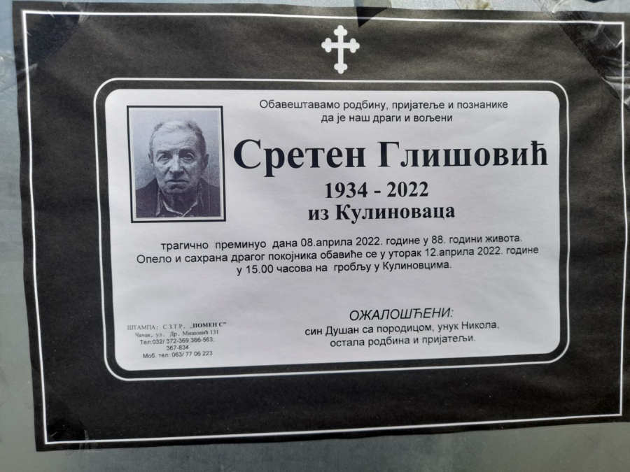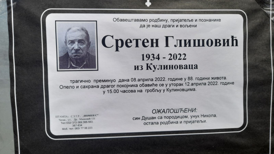 Pre tačno godinu dana u čačanskom naselju Kulinovci odigrao se krvavi zločin koji je potresao Srbiju i region. Tada dvadesetjednogodišnji Ilija Glišović nožem je usmrtio majku Slađanu (49), oca Milana (57) i dedu Sretena (87). Pre ovog učinjenog dela Ilija je imao istoriju sa narkoticima i bio je hospitalizovan u Klinici za psihijatrijske bolesti „Dr Laza Lazarević“