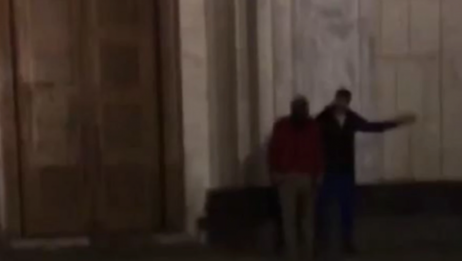 Tom prilikom, začuo se usplahireni i prestrašeni glas žene, verovatno prijateljice muškarca koji je pokušao da zaštiti hram od vandala.