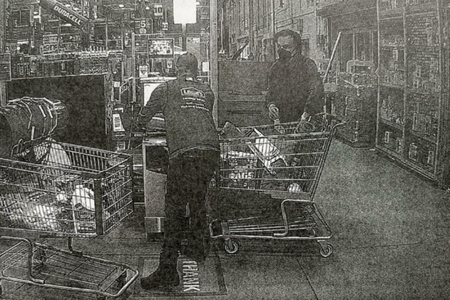 Na crno-belim fotografijama snimljenim sigurnosnim kamerama vidi se Brajan sa maskom na licu kako u kolica trpa kante, testeru za metal, frotirske peškire, čekić, zaštitno odelo, krpe, kese za smeće i sredstva za čišćenje, navodi se u izjavi tužioca u slučaju, piše Njujork post.